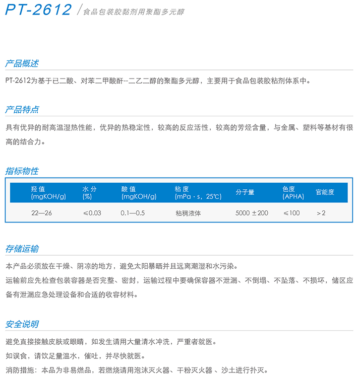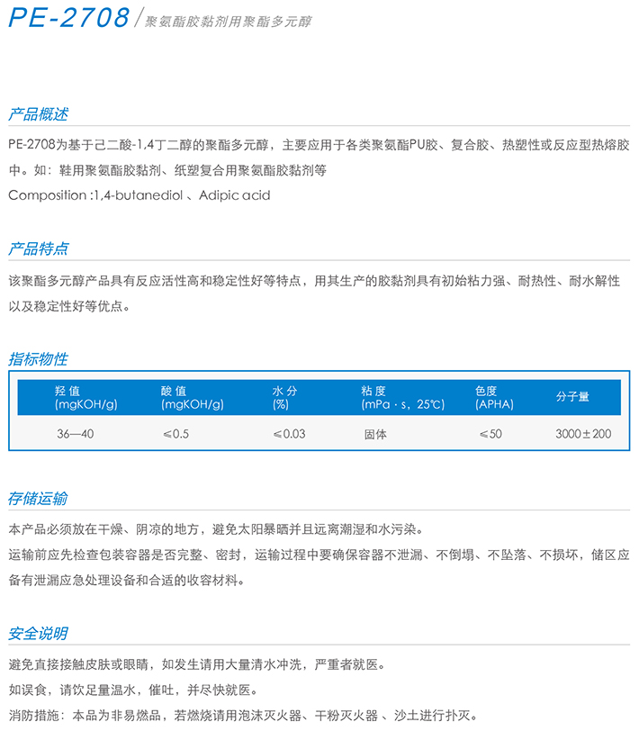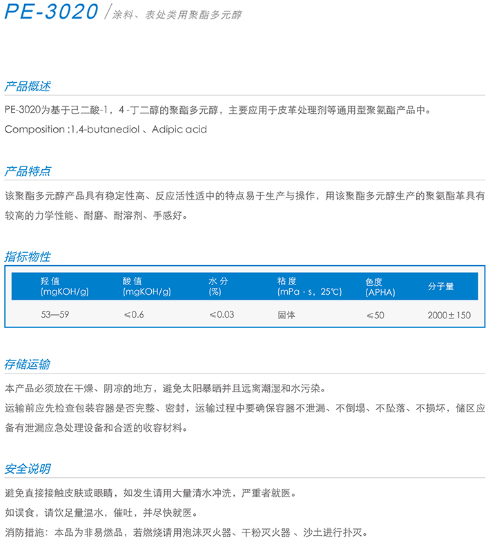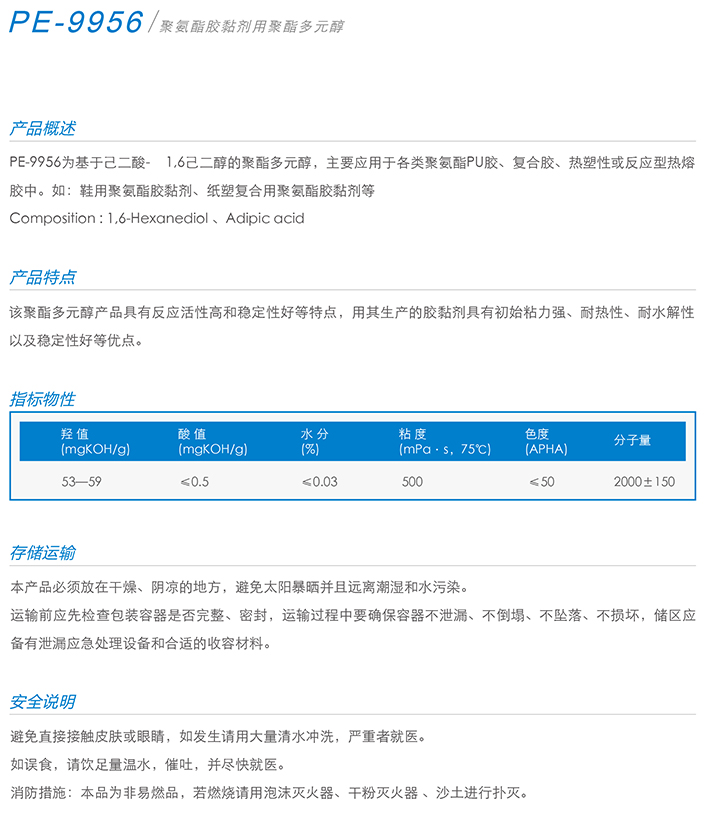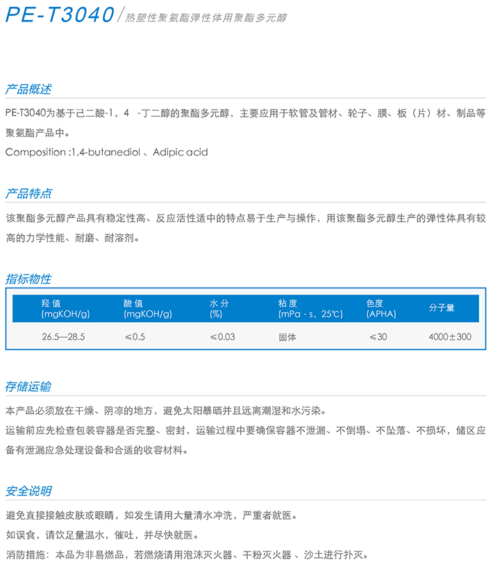 用作胶黏剂、弹性体、涂料、油墨、密封胶、革用树脂、鞋用树脂、TPU等产品的生产。