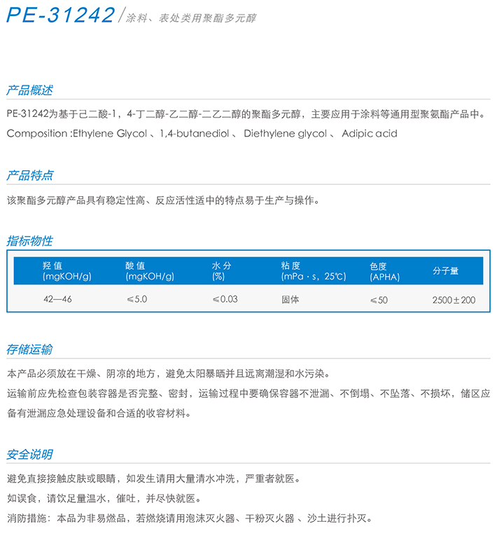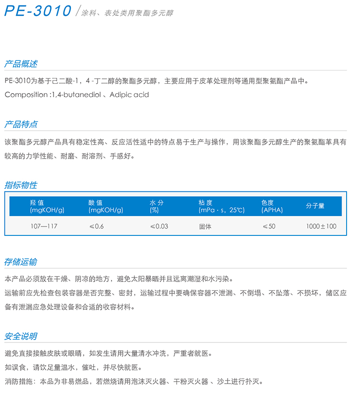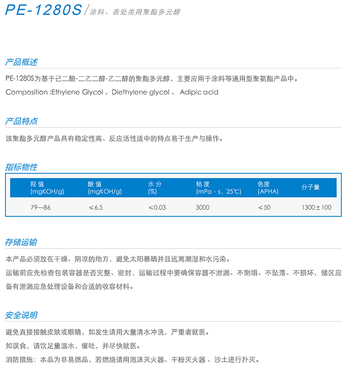 市场占有率:全国22%以上 产品特征:本品具有较高的反应活性和较高的稳定性、耐溶剂性、耐热性好等优点。 苯酐聚酯多元醇