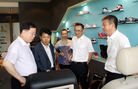7月23日上午,上海华峰超纤公司总经理段伟东会见了韩国LG集团副会长朴镇洙先生一行。在段总的热情陪同下,朴副会长在参观了无纺布车间后,又兴致勃勃地来到样品陈列室,认真了解了以超纤合成革为基材加工成的鞋、包、手套和汽车座椅等系列成品。