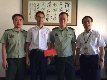 7月29日下午,值此第87个建军节到来之际,华峰集团副总经理胡永快,新材料公司副总经理钱炳贤、办公室主任庄聊聊等一行6人前往警企共建单位——武警飞云江边防部队进行节日慰问,表达了华峰集团对他们的深情厚谊,并祝贺全体官兵节日快乐。