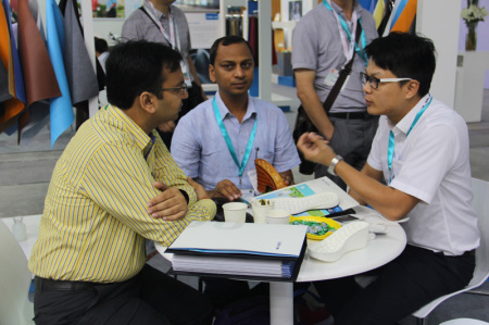 本次展会上,华峰展厅以蓝白基调凸显大气风格,开放式的结构设计,将产品展示区与洽谈区巧妙划分。开幕当天,华峰展厅宾客络绎不绝。在业务洽谈区及产品展示区,营销和技术人员认真地听取客商的咨询,并细致地为客商讲解产品的性能和特点。展会期间,来自国内以及印度、土耳其、巴基斯坦等国家和地区的众多新老客商与公司达成了初步合作意向。