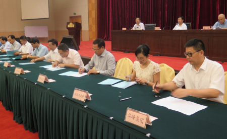 9月28日下午,在全省“三名”培育工程建设推进会上,华峰集团总裁林建一代表公司与省经信委签订了“三名”培育试点企业责任书,并在大会上作表态发言。