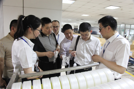 集团总裁林建一、新材料/合成树脂公司董事长尤金焕、总经理叶其伟陪同调研组一行先后参观了集团形象展厅和氨纶公司生产现场,认真听取了华峰产业布局、主导产品的介绍,了解了企业生产工艺流程、产能产值和重点项目建设情况。