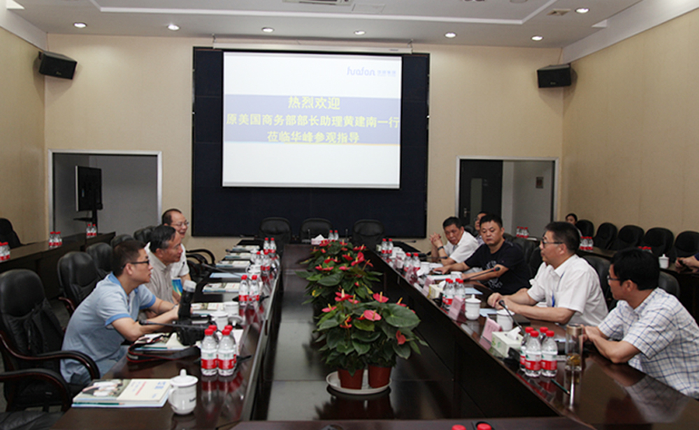 8月27日,原美国商务部部长助理黄建南一行在温州市工商联副主席徐欣隆,瑞安市委常委、统战部部长陈世尧的陪同下莅临华峰考察。