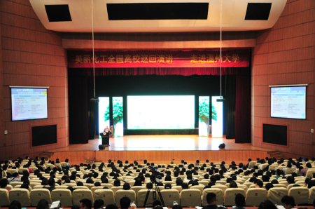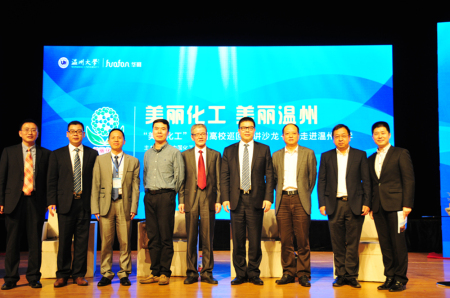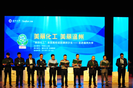 11月18日,由中国化工报主办、华峰集团协办的2015年度“美丽化工”第四站高校巡回演讲在温州大学成功举办。温州市环保局副局长陈伯祥、市安监局行政审批处处长章万威,清华大学教授、中科院院士金涌,中国化工报社副社长王晓云,华峰集团总裁林建一、总经理助理邹宗钧等多位知名专家学者和企业高管应邀出席,温州大学1000余名师生参与活动。