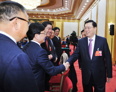 3月6日,十二届人大四次会议浙江代表团小组审议政府工作报告会议上,企业界的代表们仍然对习总书记在民建、工商联委员联组讨论会议上的讲话激动不已。一些提早来到会场的代表们,扎堆讨论起习总书记的讲话,不时彼此交流心得体会,现场气氛热烈。