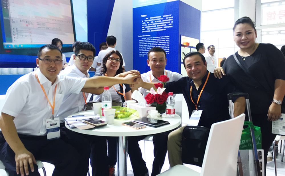 在为期三天的展会期间,华峰展厅门庭若市,展出的产品得到了海内外买家的热捧,不少客商慕名而来。展会现场,销售公司展出了适用于制作防护用劳保鞋的鞋底,制作舒适、防滑PU军鞋鞋底及其他多种制品的聚氨酯树脂新产品;TPU公司带来了适用于制作热熔胶膜、足球鞋大底、发泡鞋底、电线电缆、功能薄膜、密封件等聚氨酯制品的聚酯注塑系列、聚酯挤出系列、发泡系列等新产品。