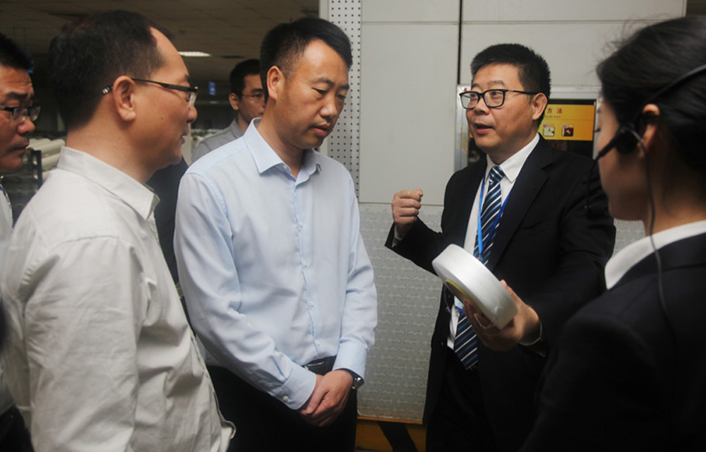 麻胜聪一行在集团总裁林建一,集团副总裁、财务总监陈学通,氨纶公司总经理潘基础等领导的陪同下先后参观了氨纶生产车间和集团形象展厅。
