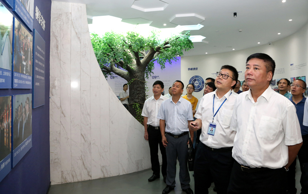 葛主任一行在集团总裁林建一,集团副总裁、新材料公司董事长尤金焕的陪同下实地参观集团形象展厅,详细了解企业生产运营情况。林总裁介绍说,近年来,华峰集团以“三大战略”为指引,以“四大创新”为支撑,以供给侧改革为重心,进一步加强顶层设计,加快内部变革,提高整体效能,保持了务实稳健的发展态势,积累了企业发展的新优势。今年1-6月份,全集团实现营业收入同比增长62.56%。其中,温州总部实现营业收入同比增长49.18%。产能、销量以及市场占有率总体保持稳步增长,市场地位和发展潜力得到进一步的巩固。