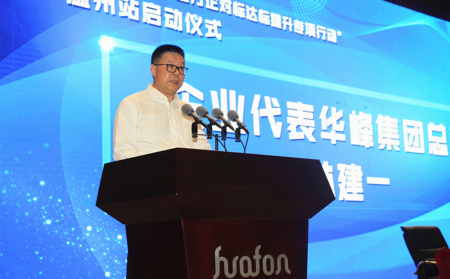 5月3日上午,全国“百城千业万企对标达标提升专项行动”温州站启动仪式在华峰举行,此举开启了温州市为期三年的对标达标“标准领跑者”行动。作为启动仪式上唯一的发言企业代表,华峰集团总裁林建一分享了以高标准引领高质量发展的实践经验,受到与会代表的广泛关注。
