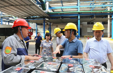 黄局长一行在陈总的陪同下先后参观了铝业熔铸车间、氨纶生产一线、氨纶三期现场、化工己二酸三期、新材料车间和立体库现场,黄局长认真听取了各公司负责人的详细介绍。在调研过程中,黄局长询问了重庆华峰产品销售情况和项目建设情况,肯定了重庆华峰的发展速度和规模。重庆华峰短短几年发展迅猛,上缴税费逐年递增,为涪陵国民经济运行做出了重大贡献,为重庆工业的发展树立了标杆。