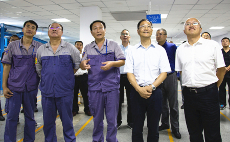 陈书记一行先后参观了化工己二酸三期、新材料立体仓库,氨纶生产一线和铝业熔铸、热轧车间现场,代表团一行认真听取了林总裁和各公司负责人的汇报。代表团在听取汇报后纷纷表示,华峰在渝快速发展的经验和创新方法,给大家留下了深刻印象,对温州企业走出来发展树立了标杆。