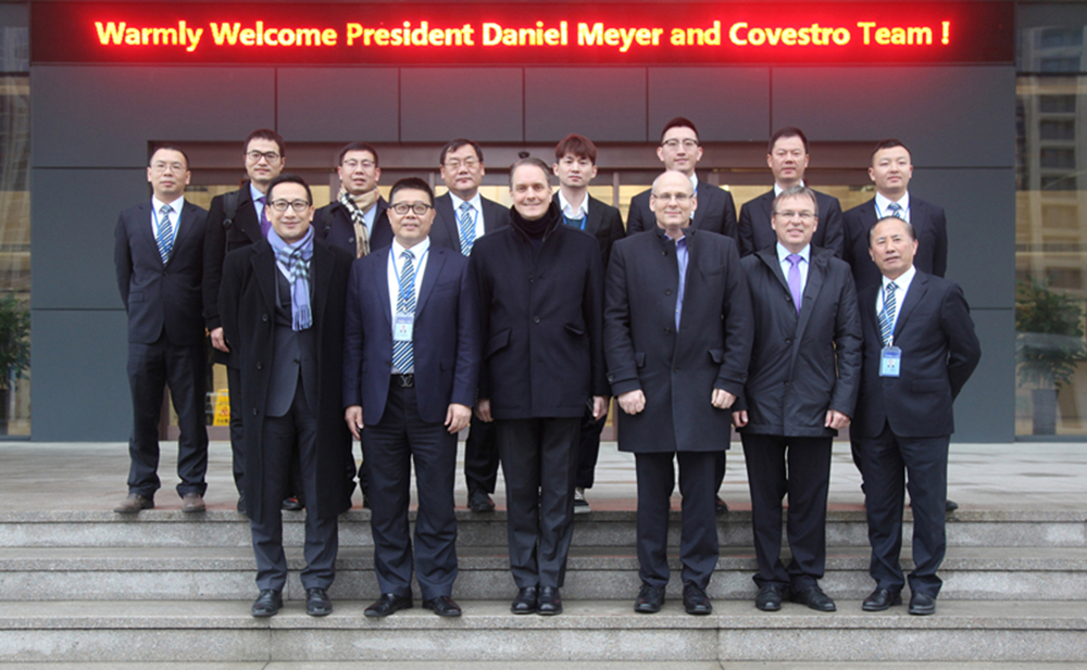 共叙友谊、再商发展。1月15日,德国科思创聚氨酯全球总裁Daniel Meyer一行6人到访华峰,集团总裁林建一、高级副总裁尤金焕等领导热情迎接了远道而来的客人。