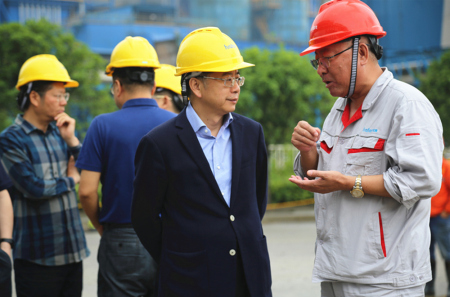 4月29日,涪陵区委书记周少政莅临重庆华峰项目建设现场,调研重庆华峰新建项目推进及施工安全工作。集团副总裁、重庆华峰化工总经理陈恩之等公司领导热情接待了来宾一行。