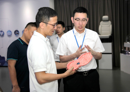 林敏清一行参观了集团形象展厅,听取了企业发展历程、产业布局及主导产品的介绍,加深了对华峰的印象。参观期间,林敏清对华峰在聚氨酯产业链上的深耕与拓展产生了浓厚兴趣,不时驻足,仔细询问。
