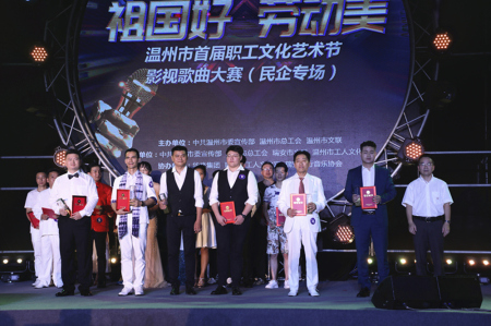 用经典影视歌曲,唤起对各个时代的记忆,让广大职工用歌声向新中国成立70周年献礼。8月16日,“祖国好·劳动美”温州市首届职工文化艺术节影视歌曲大赛在华峰集团举行,经激烈角逐,来自华峰集团的合唱选手许维、陈明毓以9.878分的全场最高分获民企专场最佳歌手奖。