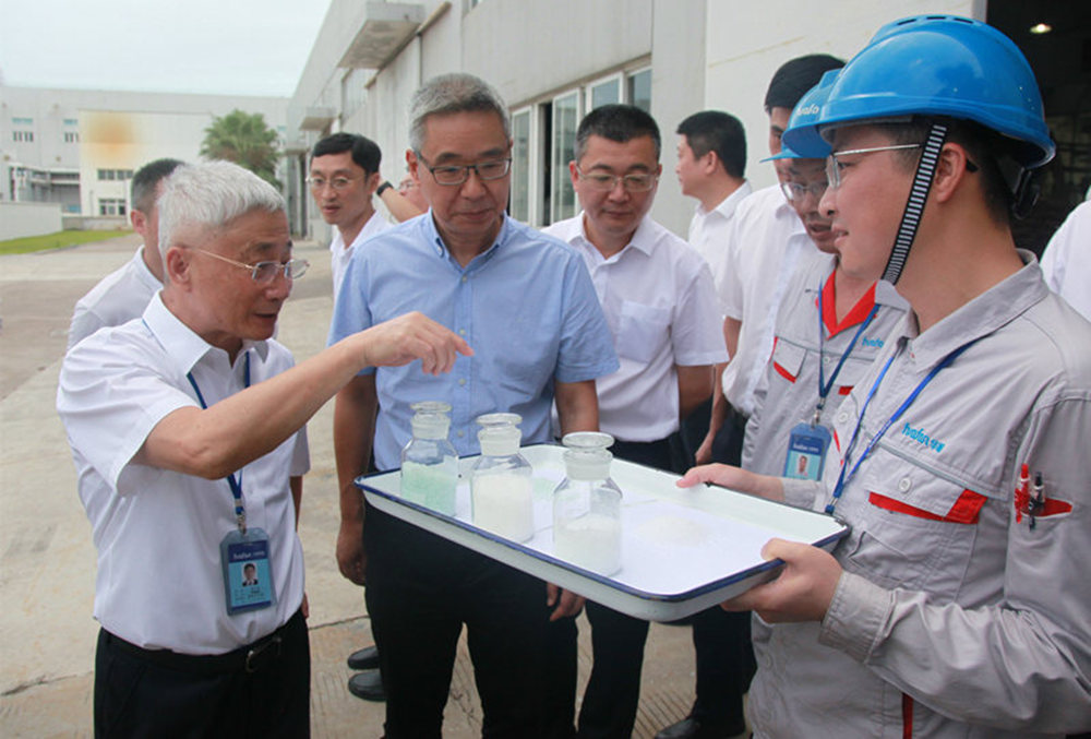 是日上午,种及灵率领涪陵区党政代表团,在温州市政府副秘书长江春,瑞安市委副书记、市长秦肖等领导的陪同下莅临华峰瑞安基地开展对口支援交流合作学习考察活动。尤小平、尤飞宇、林建一、陈恩之、潘基础等集团领导陪同来宾参观了集团形象展厅和尼龙66生产车间。