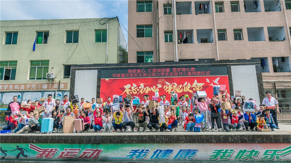 华峰重庆氨纶公司工会主席陈召杰、华峰重庆氨纶各党团支部成员、山窝小学校长兼党支部书记石校长及教师代表出席捐赠仪式。(夏君)