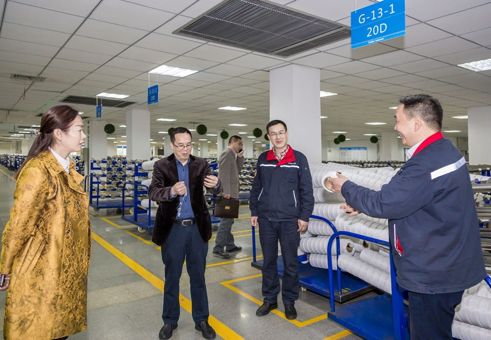 牟小云一行先后参观了化工总调度室、己二酸三期现场、氨纶参观通道和氨纶三期智能化生产车间,详细听取了企业概况、产业布局、产业结构、企业智能化和未来发展规划的情况介绍。