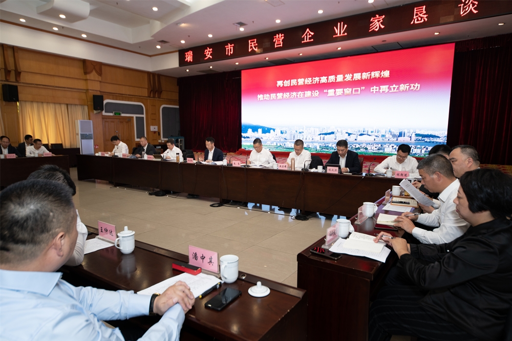 “我们党委政府始终与民营企业站在一起,要努力让瑞安成为广大企业家的向往之地、兴业之地、圆梦之地。”瑞安市委书记麻胜聪在讲话中强调,在“忠实践行八八战略、奋力打造重要窗口”的新征程上,希望广大民营企业家增强定力、坚定信心,观大局、明大势;做强主业、追梦不息,努力在融入国内“大循环”、国内国际“双循环”中抢占先机、赢得主动;义利并举、饮水思源,积极投身家乡各项事业发展,实现企业利益与社会责任的双赢。