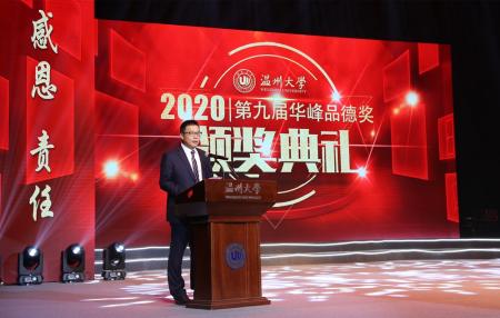 “相信这份品德的力量将在一代又一代温大人的手中薪火相传,也将鼓舞着华峰人在创业创新中奋勇前行。”集团总裁林建一在致辞中有感而发,他说,九年来,“华峰品德奖”持续不断地聚焦、挖掘、传播来自身边人的正能量故事。在这些看得见、摸得着、学得到的先进事迹中,都充分体现了温大的深厚底蕴和温大人的优秀品格,也坚定了华峰持续与温大联合办好活动的信心和决心。他表示,作为校企双方的共同价值追求,华峰品德奖的设立、评选和颁发,其意义在进一步弘扬温大“厚培德本”的优良传统,践行华峰“四个共同”的核心价值观和“以德为先”的用人导向,共同推动学校和企业的思想道德建设。同时,林建一号召大家要在对标对表中,从榜样身上汲取正能量,从而凝聚起新时代崇德向善的磅礴力量,回馈社会更多的温暖。
