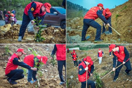 撸起袖子、扶正树苗、挥锹铲土、填平树坑、踩实新土……当日上午9时30分,志愿者们到达植树区域领取树苗后,大家二三结对、三五成组、配合默契,一派繁忙热闹的劳动景象。同时,志愿者们还不忘向当地的绿植技术指导员虚心请教,以保障树苗栽种的存活率。