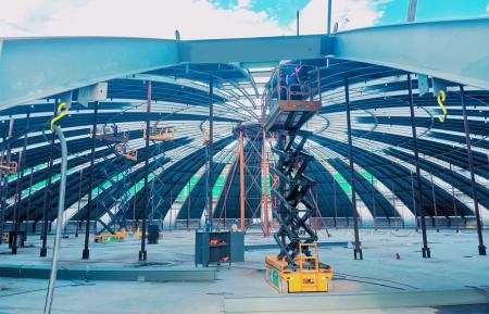 日前,随着最后一块拱顶块成功就位,华港LNG项目T-6202储罐拱顶块吊装工作按计划完成,这标志着储罐施工正式由罐外预制转为罐内安装阶段,项目顺利完成重大建设节点。