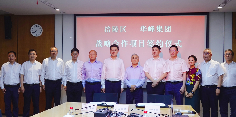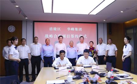签约仪式上,华峰集团董事长尤飞宇与涪陵区副区长胡涛代表双方进行现场签约。涪陵区委书记王志杰,涪陵区委常委、统战部长夏艺,区政协副主席、白涛工业园区党工委书记、管委会主任周勇;华峰集团董事局主席尤小平,华峰集团副总裁尤飞锋、陈恩之、唐劲松、尤若楠等政企领导参加座谈并见证签约。