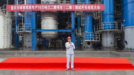 为全面部署项目开车前各项工作,鼓励建设者再接再厉,全力以赴确保项目如期开车运行。7月7日上午9时38分,重庆华峰聚酰胺年产10万吨己二腈项目(二期)调试开车动员大会顺利举行。集团董事长尤飞宇,集团副总裁、重庆华峰化工总经理陈恩之等集团和公司领导,公司各部门代表,监理及承建单位代表等近260人参加动员会。