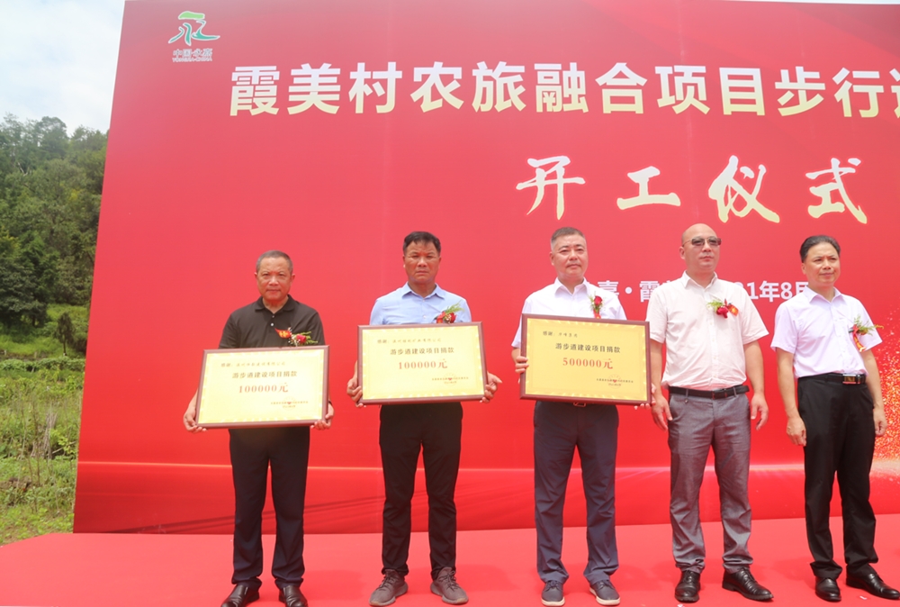 仪式上,潘基础代表华峰集团,向霞美村游步道建设项目捐资50万元,以实际行动助力乡村振兴。