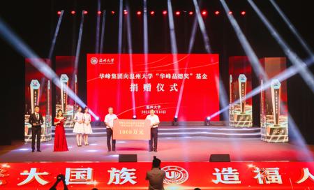 尤飞宇指出,经过10年的发展,温州大学“华峰品德奖”已经成为一个具有知名度的公益品牌,赢得了社会各界的充分肯定。为此,他还带来一个好消息:华峰集团将在原来设立的1000万元品德基金基础上,再追加1000万元,一如既往地支持温州大学的德育工作,进一步加大对道德模范的激励和褒奖。通过此次捐赠表明,在下一个十年,“华峰品德奖”将继续成为弘扬温大“厚培德本”优良传统与华峰“以德为先”人才理念、传播社会正能量的精神沃土,深入推进校企双方共同的价值追求。(李其中)