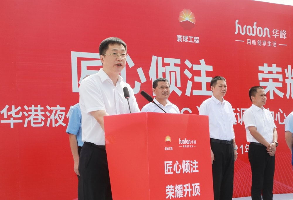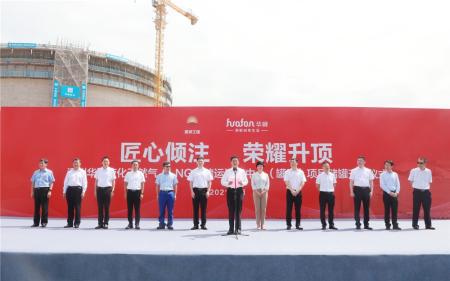 “自2020年9月正式启动项目以来,短短一年时间,此次储罐成功升项,标志着项目建设迈出了关键一步,取得了重要的阶段性胜利。”仪式上,华峰集团董事长尤飞宇在致辞中深有感触,向所有支持项目建设并亲临现场的各级领导、合作伙伴、各界朋友表达了欢迎和感谢。