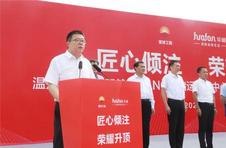 从尤飞宇致辞中还了解到,华港LNG项目作为华峰集团“十四五”投资清洁能源的一项重大产业布局,对提升浙南地区天然气调峰、应急功能,确保天然气供应的稳定性和安全性方面具有重要战略意义。同时,项目将进一步助力实现“双碳”目标和能源“双控”,让水更绿、天更蓝,助力打赢蓝天保卫战,为建设美丽中国贡献力量。