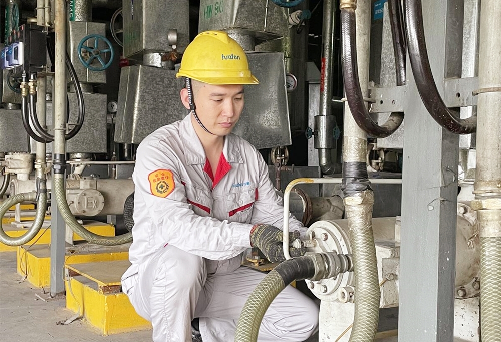 走在华峰化学瑞安厂区的大道上,一路走着,抬头细看,在显目的行道旗上,就能看到作为“千禧工匠”典型黄章勋的工作追求:俯身修好每一个零部件,挺身争当新时代好青年。