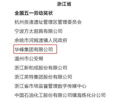 4月13日,中华全国总工会公示2022年全国五一劳动奖和全国工人先锋号拟表彰人选(集体)名单,华峰集团有限公司成功入围“全国五一劳动奖状”公示榜单,成为温州市唯一入围的企业单位。