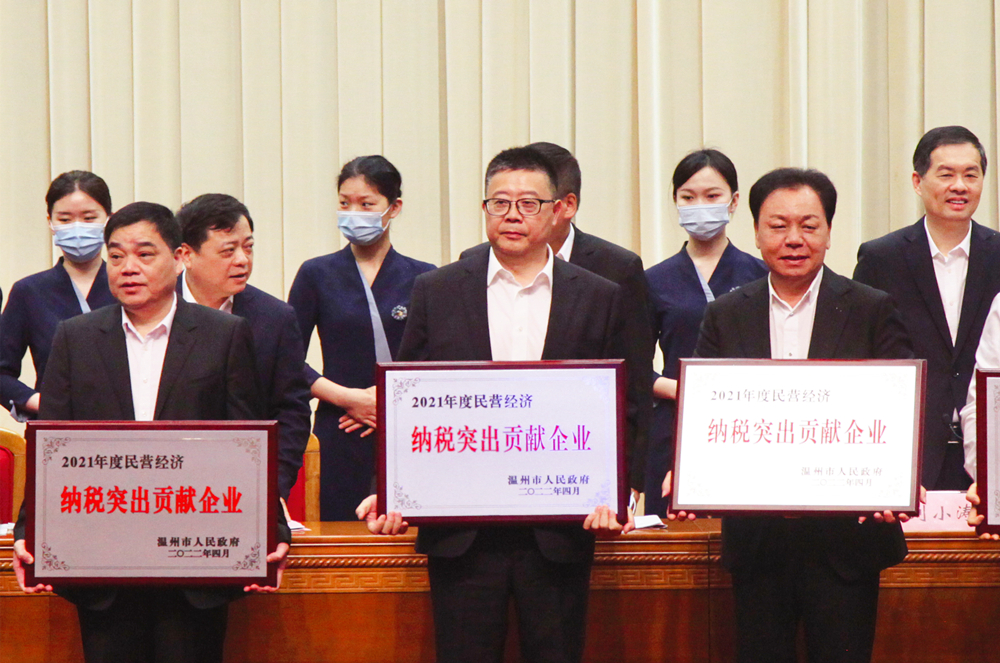 4月27日上午,温州市制造业与民营经济高质量发展大会暨“两个健康”再深化推进会在市人民大会堂召开。会议对全市制造业高质量发展企业进行了集中表彰,华峰集团及其旗下公司荣膺多项大奖闪耀全场,华峰集团总裁林建一作为企业代表上台接受授牌表彰。