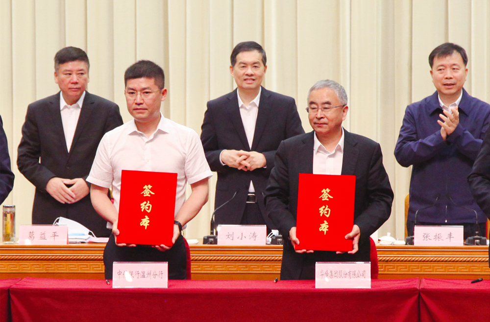 会议举行了银企银项授信签约仪式,通过金融助力产业发展,促进产业发展与金融支持的深度融合。华峰集团副总经理翁奕峰代表集团与中信银行温州分行进行了授信签约。