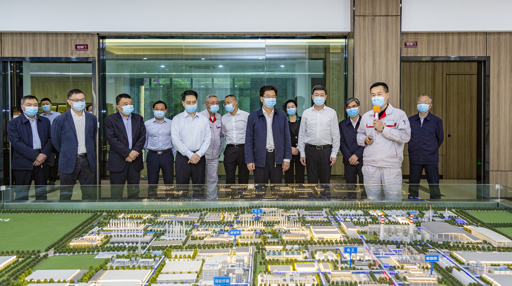 “11年前因三峡对口支援,华峰集团与涪陵结缘。得益于当地优良的营商环境和两地政府的大力支持,华峰在这片沃土取得了大发展。至今已连续启动19期项目,完成15期建设,2021年实现产值278亿元,上缴税收超20亿元。”在重庆化工企业形象展厅的沙盘前,公司常务副总经理苗迎彬详细介绍了基地概况、生产经营、科技创新、智能制造、安全环保和产业链供应链等情况。
