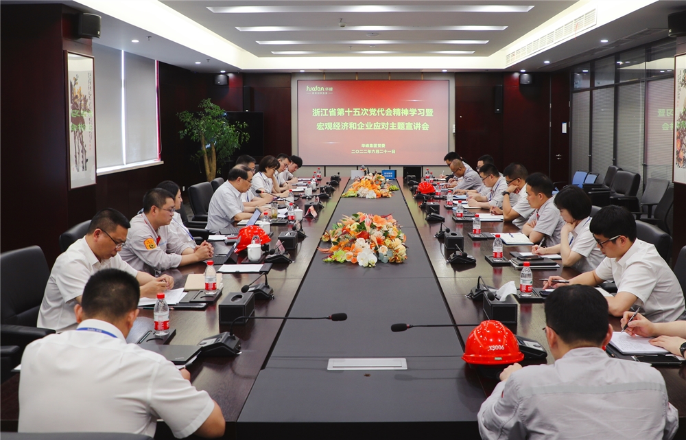 6月21日下午,集团党委组织召开浙江省第十五次党代会精神学习暨宏观经济与企业应对主题宣讲会。集团党委副书记、总裁林建一,集团副总裁尤若楠及集团党委成员、党总支(含直属党支部)书记和中层以上党员干部代表共20多人参加了会议。会议由集团党委委员王利主持。