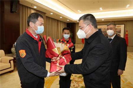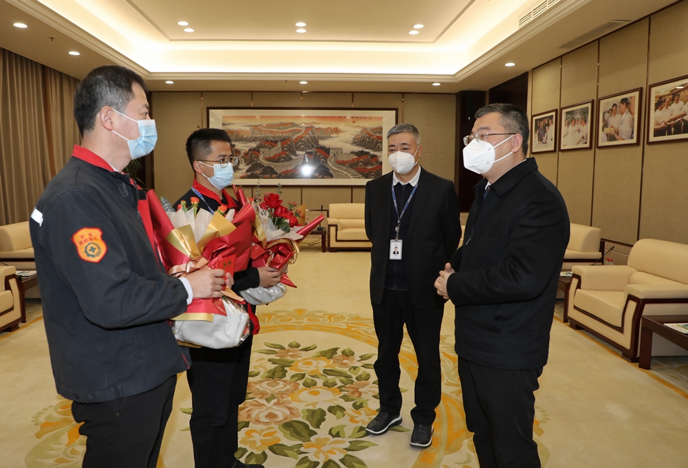 新春佳节即将来临之际,1月18日上午,瑞安市委副书记、市长秦肖一行来到华峰集团,走访慰问陈斌、陈光剑等高层次人才,代表市委、市政府送上慰问金和新春祝福,感谢他们为瑞安市经济社会发展贡献智慧和力量。集团副总裁潘基础接待了来宾一行。