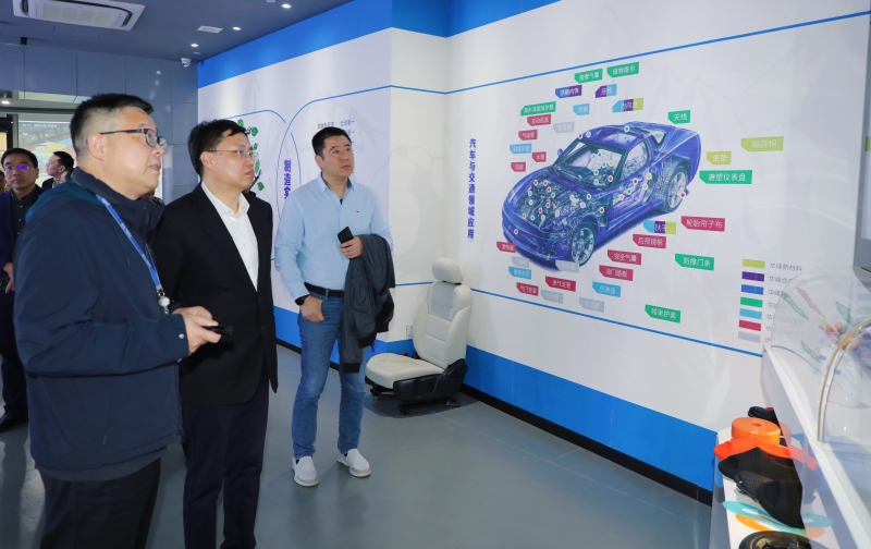 是日上午,杨胜杰一行参观了集团形象展厅,林建一简要介绍了集团发展历程、产业布局、经营发展等情况,并着重介绍了华峰的产品创新应用。林建一表示,以“四大战略”为引领的华峰,大力推进以新材料为代表的先进制造业,聚焦“品质化、差异化、轻量化、环保型”产品战略,逐步推进产业由石油基向生物基、碳中和、可降解、水性(无溶剂)等现代再生材料转型,现主营的十余大系列产品市场占有率,均位居国内乃至是全球行业前茅。