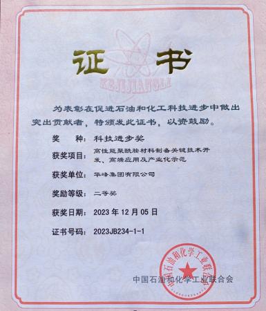 12月5日,2023 全国石油和化工行业科技创新大会在湖北武汉召开,大会隆重表彰了2023年度我国石油和化工行业科技创新的获奖单位和个人。其中,由华峰集团有限公司牵头申报的《高性能聚酰胺材料制备关键技术开发、高端应用及产业化示范》项目,从众多高新技术中脱颖而出,斩获2023年度“中国石油和化学工业科技进步二等奖”。