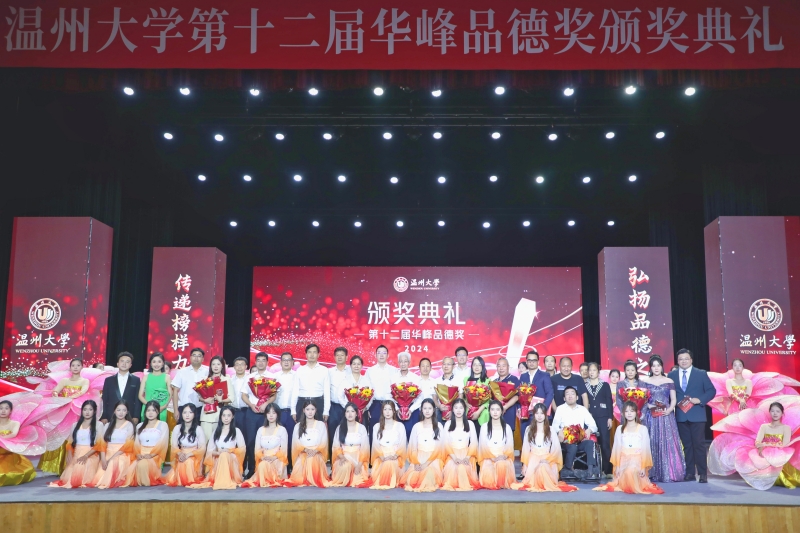 弘扬品德之光,传递榜样力量。9月11日下午,温州大学育英大礼堂内灯光璀璨,气氛庄重而热烈,温州大学第十二届“华峰品德奖”颁奖典礼在此隆重举行。千名温大师生代表齐聚一堂,共同见证温大“文明道德之花”再次绽放。