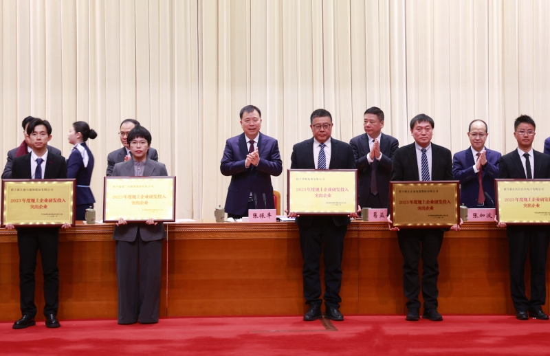 1月3日,加快建设创新温州大会隆重召开。今年的“新年第一会”一脉相承、与时俱进,聚焦加快建设创新温州,为先进集体代表颁奖、颁发试点企业证书、签约“一港五谷”重点招引项目和科技合作项目等,进一步激发温州各界推动创新发展的新动力。其中,华峰集团荣获“2023年度规上企业研发投入突出企业”,集团总裁林建一上台从浙江省副省长、温州市委书记张振丰的手中接过奖牌。