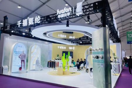 此次展会,华峰化学精心打造的展位令人眼前一亮,集中展示了以家居服和内衣裤为主的终端产品,展品均采用了千禧?旗下的再生氨纶、生物基氨纶、高性能氨纶、抗菌氨纶、黑氨纶以及酸性可染氨纶等创新材料。这些材料在功能性上的表现尤为卓越,如抗菌氨纶能有效抑制细菌滋生,为消费者提供更健康的穿着体验;高性能氨纶则具备出色的弹性恢复力,使衣物久穿不变形。同时,在环保性方面,再生氨纶和生物基氨纶的应用,契合了当下纺织服装行业可持续发展的低碳环保潮流。此外,在时尚感的搭配上,黑氨纶与酸性可染氨纶为设计师提供了更多创意空间,满足了不同消费者对于贴身衣物在外观和色彩上的多样化需求。这些独特优势,为纺织服装企业提供了创新原材料方案,助推行业绿色发展。