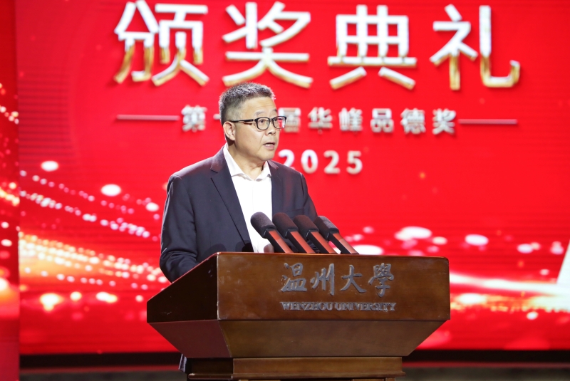 “感谢温大校领导及全体师生的精心组织与辛勤付出,让‘华峰品德奖’从一项公益品牌,内化于心、外化于行,成为师生共识认同的价值符号与精神图腾。”林建一在典礼致辞中指出,温州这片土地自古崇德向善,“华峰品德奖”既是对温大“光大国族、造福人群”的深情回应,是对温州“义利并举、经世致用”的当代赓续,更是对习近平总书记“国无德不兴,人无德不立”谆谆教诲的身体力行。