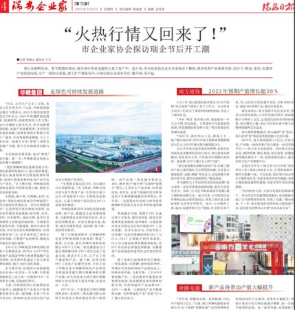 春江水暖鸭先知。春节假期结束后,我市各行各业迅速投入复工复产中。连日来,市企业家协会走访多家瑞企了解到,我市优势产业重焕光彩,高分子、鞋业、家纺、电器等产业欣欣向荣,生产一线如火如荼,招工扩产紧张有序,火热行情让企业坐不住、慢不得、等不起。