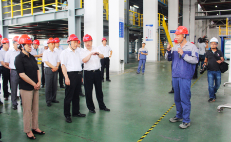 ④8月4日,南通市委书记陆志鹏、市长韩立明率市委十一届十二次全会近百名与会人员莅临江苏华峰超纤调研指导。陆书记一行深入无纺布车间,实地察看了正在试运行的生产线,详细了解纺丝工序和无纺布工序。陆书记勉励江苏华峰超纤再接再厉,再创佳绩,为南通市的经济发展作出更大的贡献。