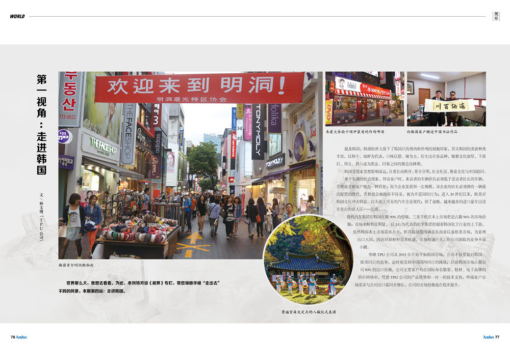 世界那么大,我想去看看。为此,本刊特开设《视界》专栏,带您领略华峰“走出去”不同的风景,本期第四站:走进韩国。