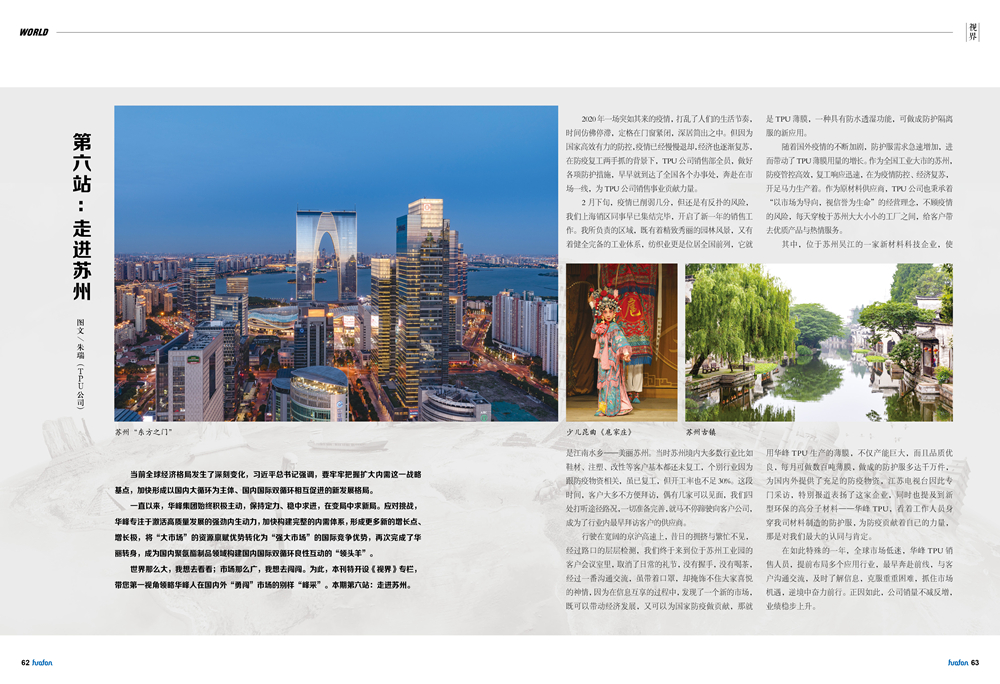 世界那么大,我想去看看;市场那么广,我想去闯闯。为此,本刊特开设《视界》专栏,带您第一视角领略华峰人在国内外“勇闯”市场的别样“峰采”。本期第六站:走进苏州。